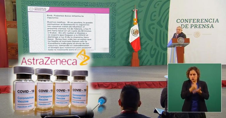 Ciudad de México.- El próximo domingo llegarán a México desde la India alrededor de un millón de vacunas contra el coronavirus desarrolladas por la empresa AstraZeneca en conjunto con la Universidad de Oxford, así lo reveló la mañana de este miércoles el presidente Andrés Manuel López Obrador. Durante la conferencia de prensa en Palacio Nacional, … Sigue leyendo 1 millón de vacunas anti-COVID de AstraZeneca, para el domingo