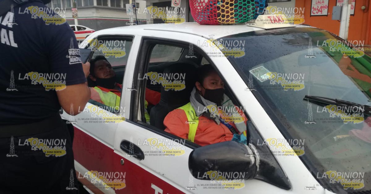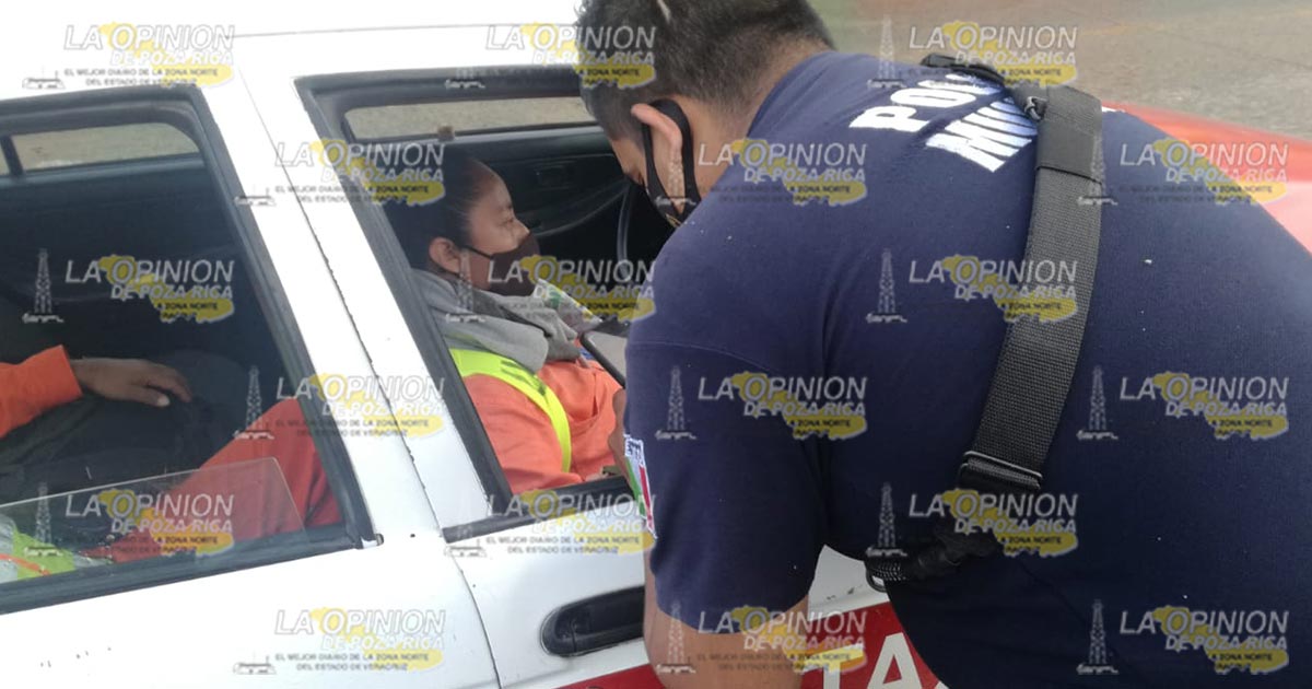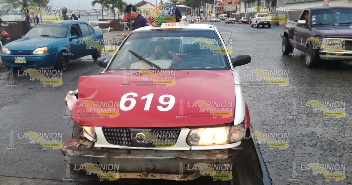 Tuxpan, Ver.- Dos obreros del grupo Carso quedaron lastimados luego de que el taxi en el que viajaban hacia su centro de labores se impactó por alcance contra un coche particular; elementos de Tránsito Municipal realizaron el peritaje correspondiente y trasladaron las unidades al corralón.