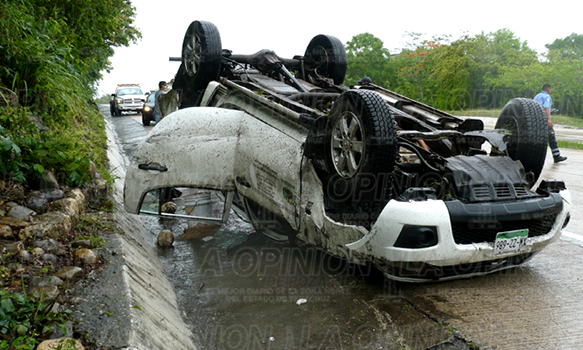 Tuxpan, Ver.- Camioneta quedó destrozada y con los neumáticos hacia arriba, luego que su conductor perdiera el control y diera…