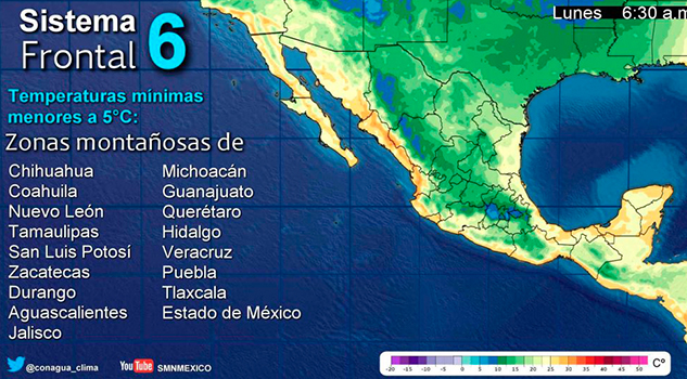 Este lunes el frente frío 6 se extenderá sobre la porción media del Golfo de México y el sureste del…