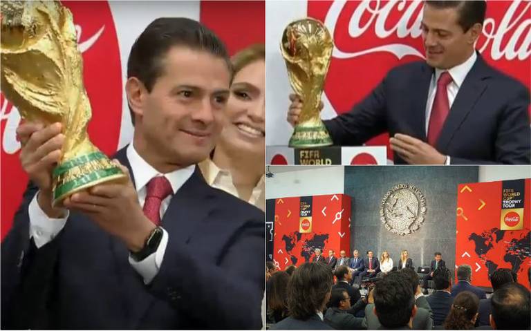 Peña Nieto levanta la Copa del Mundo y pide al Tri regresar de Rusia con ella
