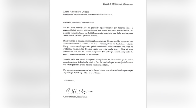 Carta íntegra de la renuncia de Carlos Urzúa a la SHCP