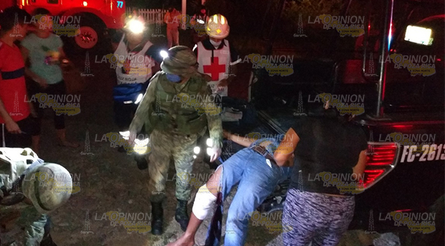 Tantoyuca, Ver.- Autoridades de emergencias que acudieron a brindar los primeros auxilios al militar que término chocando contra un tractocamión,…