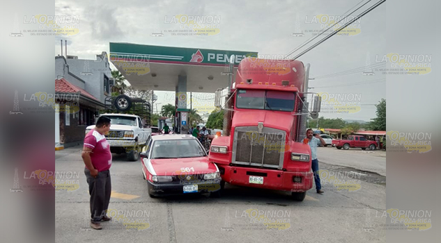 Tantoyuca, Ver.- Aparatoso accidente de vialidad entre un taxi marcado con el numero económico 561 con placas de circulación A-164-XET…