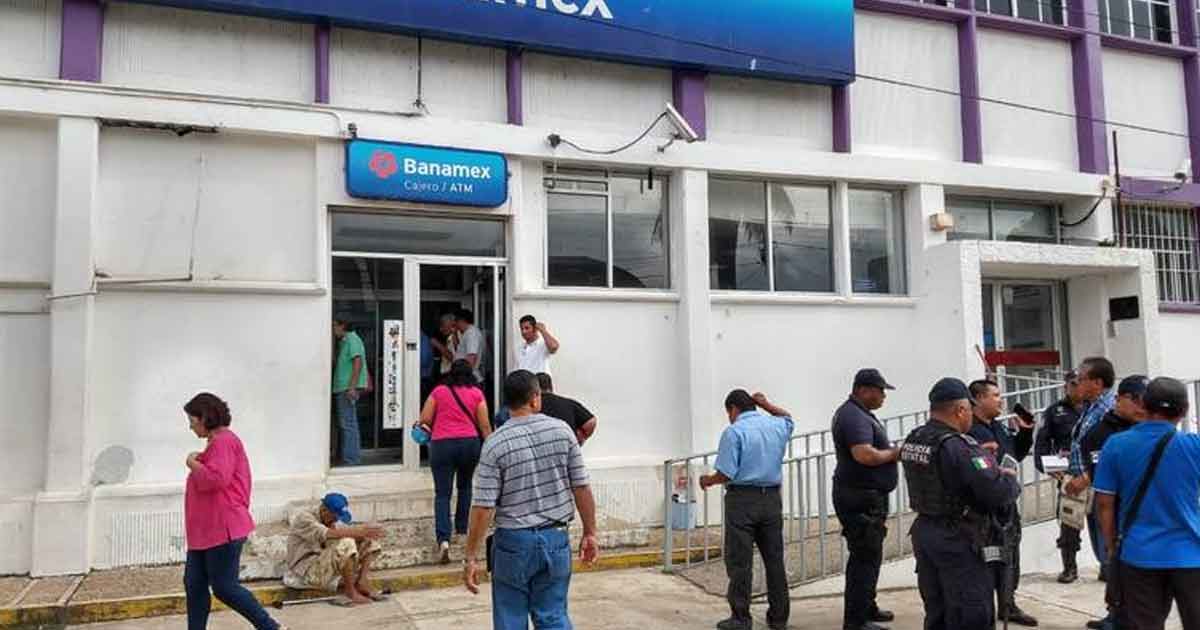 En plena quincena, grupo armado asalta banco y a cuentahabientes