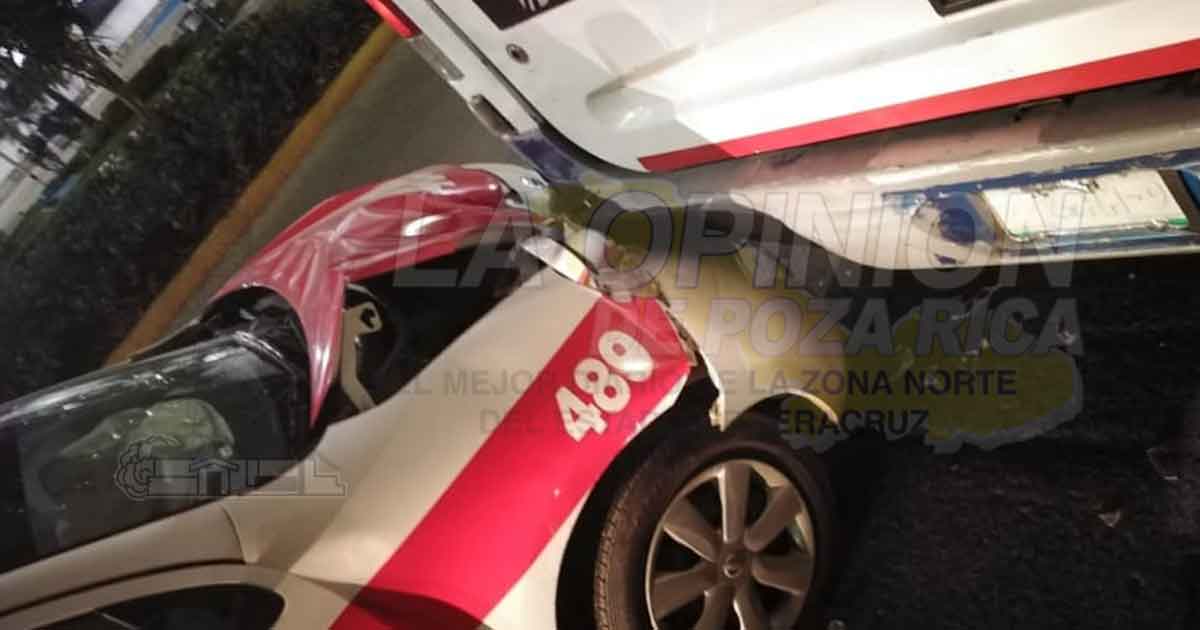 Tuxpan, Ver.- Un despistado taxista quien presuntamente “pestañeo», terminó incrustado en la parte trasera de un camión del transporte público,…