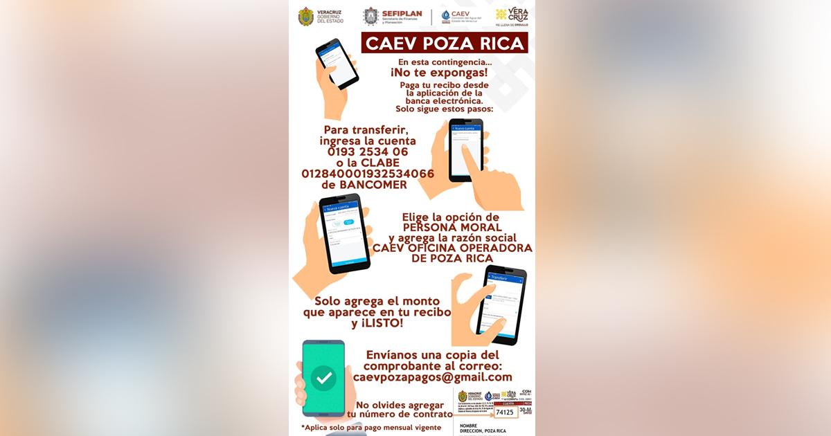 Poza Rica, Ver.- La oficina de Poza Rica de la Comisión de Agua del Estado de Veracruz (CAEV) difunde los…