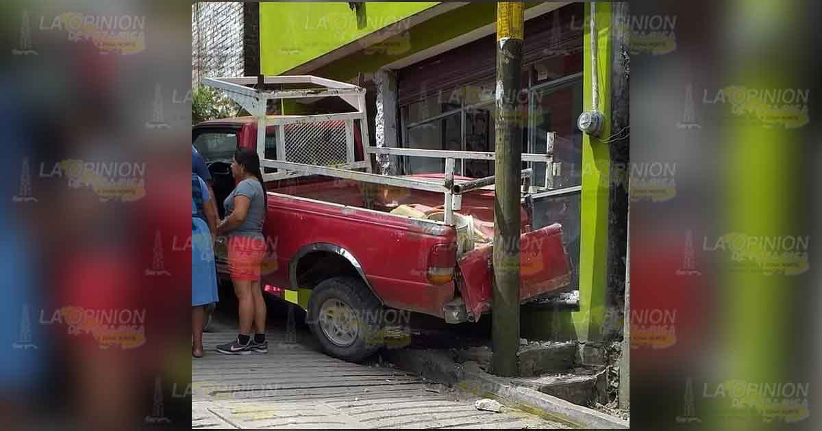 Camioneta casi arrolla a vendedor de aguas frescas