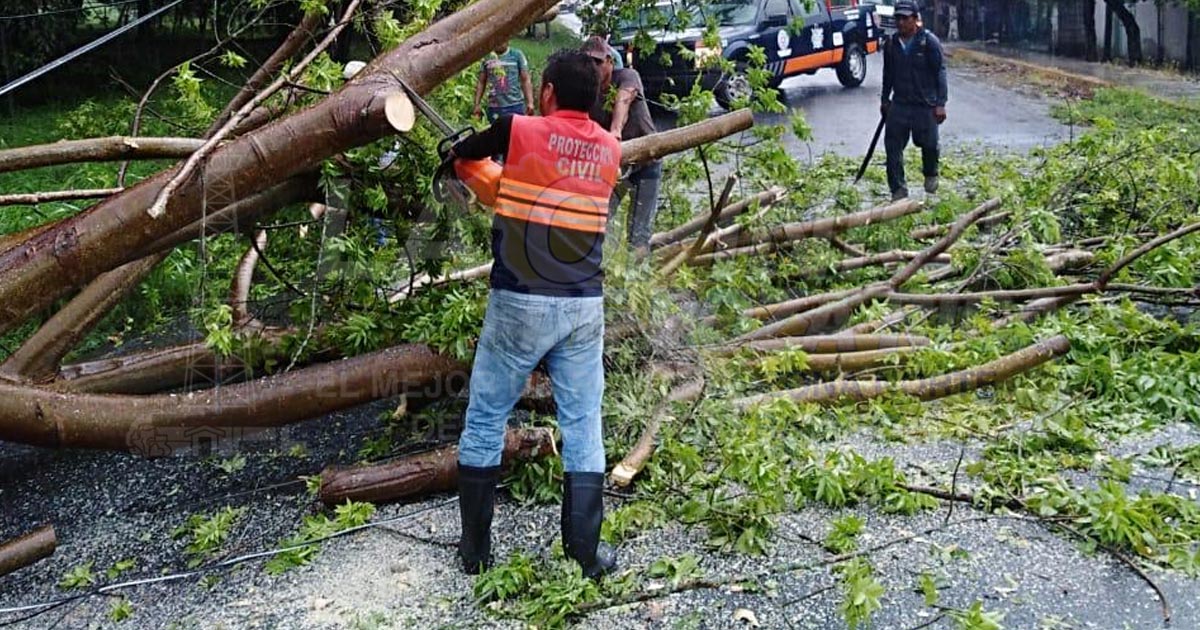 Lluvias generan la caída de un árbol en ejido Agua Nacida, en Álamo