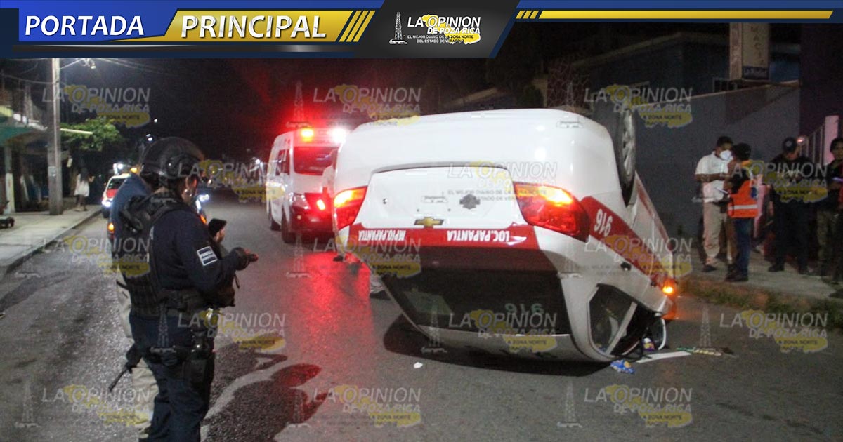 Papantla, Ver.- Fuerte volcadura de un taxi se registró durante la madrugada de este viernes, dejando como saldo daños materiales…