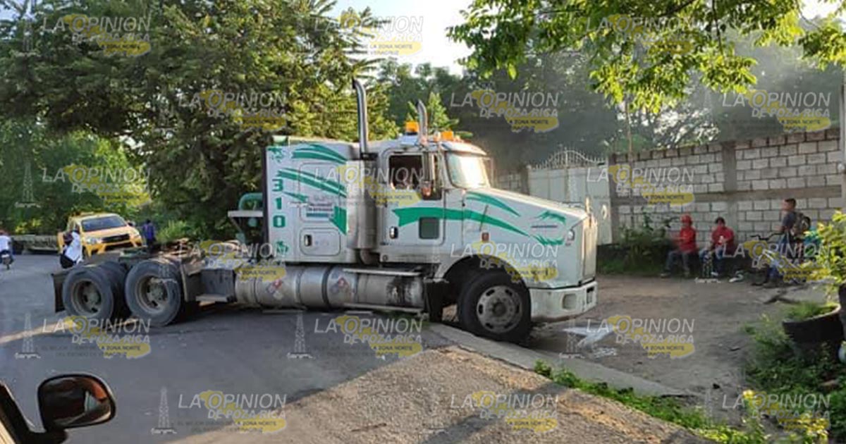 Tráiler a punto de volcar en la carretera Álamo-Potrero