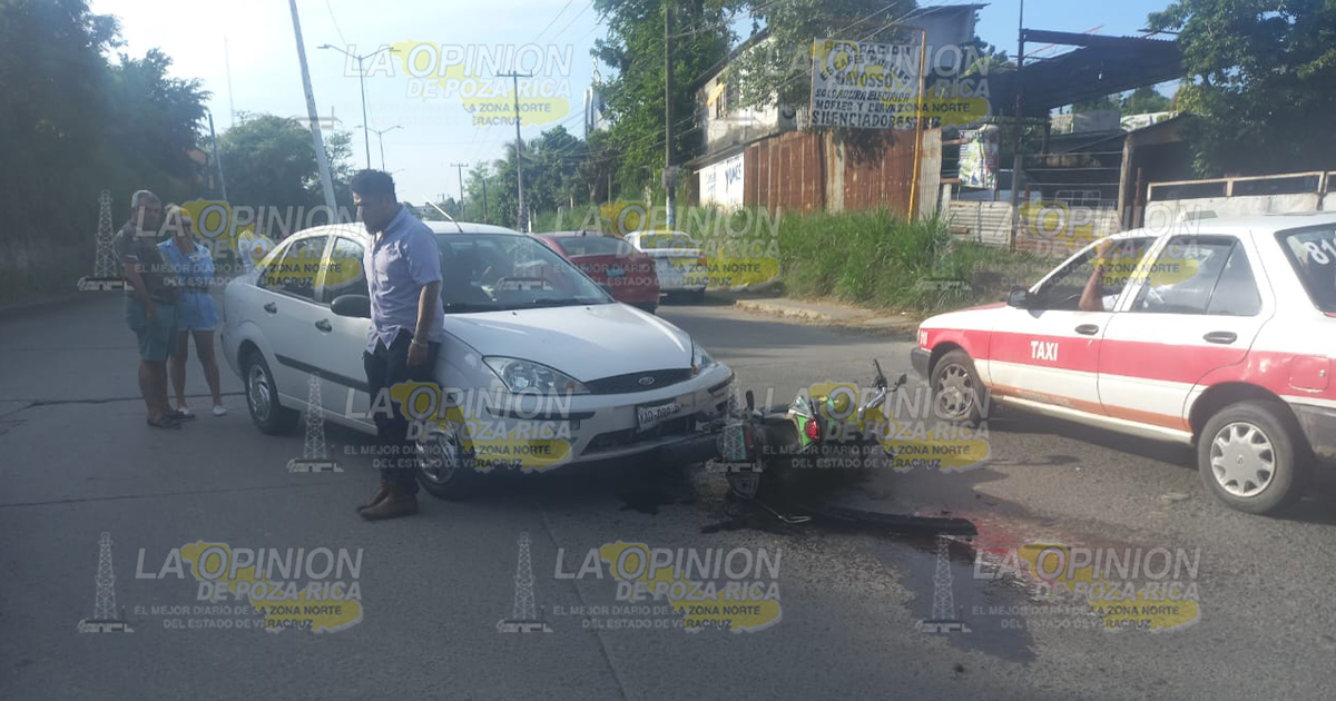 Tuxpan, Ver.- Motociclista que fue impactado por un automóvil en el libramiento de esta ciudad resultó lesionado; elementos de Tránsito…