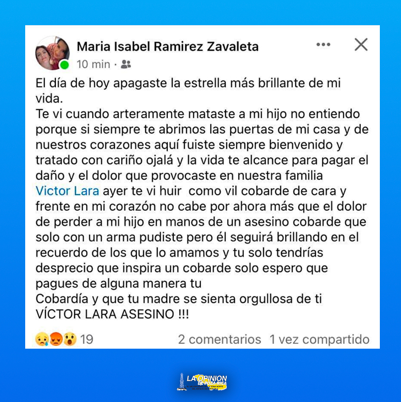 María Isabel Ramírez Zavaleta, madre de Fidel González Ramírez, quien fue asesinado la madrugada de este lunes 14, envió un…