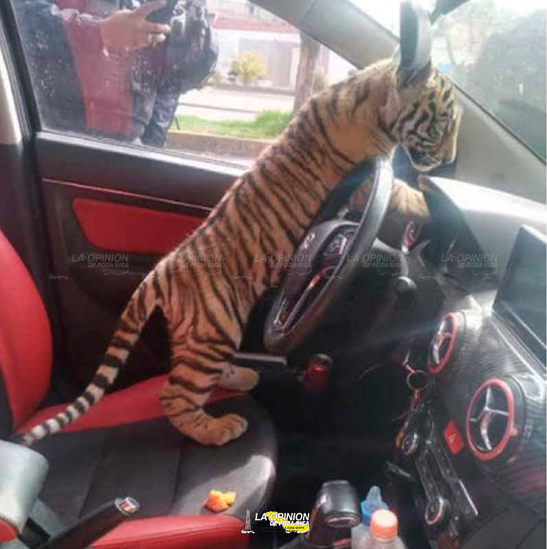 Rescatan a tigre de bengala ‘bebé’ en un auto sobre la Texcoco