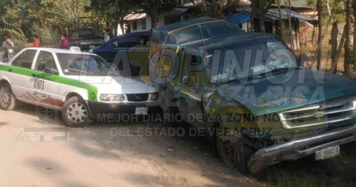 Huejutla, Hgo. – Considerables daños materiales y cuatro personas lesionadas, fue el saldo de un choque automovilístico que se registró en las inmediaciones de la comunidad de Tancazahuela perteneciente al municipio de Chiconamel, Veracruz, luego de que el conductor de un taxi chocara contra una camioneta.