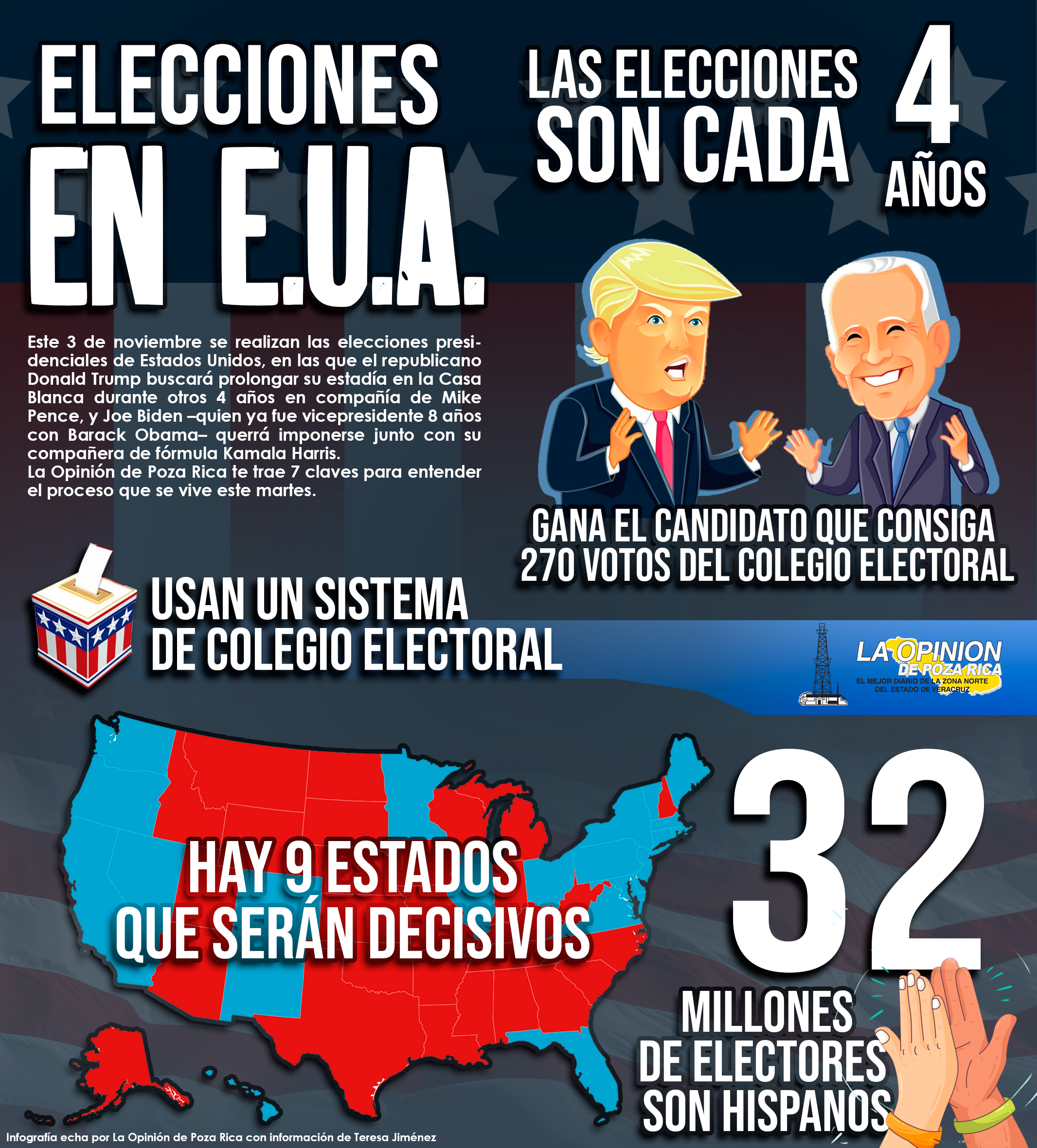 Este 3 de noviembre se realizan las elecciones presidenciales de Estados Unidos, en las que el republicano Donald Trump buscará prolongar su estadía en la Casa Blanca durante otros 4 años en compañía de Mike Pence, y Joe Biden –quien ya fue vicepresidente 8 años con Barack Obama– querrá imponerse junto con su compañera de fórmula Kamala Harris.