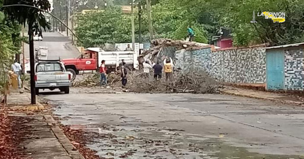 Cerro Azul, Ver.- Caída de árboles, cortes de energía eléctrica son algunas de las afectaciones que se presentaron en esta ciudad a consecuencia de los efectos de la tormenta tropical Alberto, las cuales son atendidas por personal de protección civil, ayuntamiento, brigadas de emergencia y de comisión federal de electricidad, Ejército Mexicano.