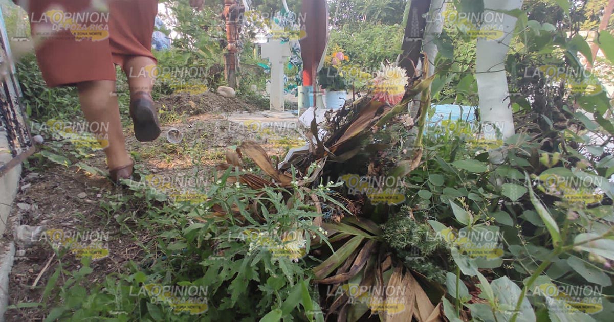 Tihuatlán, Ver. – Totalmente abandonado se encuentran el cementerio de la comunidad de Zacate Colorado, en el cual varias de las lapidas que se localizan en este lugar se encuentran destrozadas, situación que incluso representa un problema de salud para las personas que vistan este espacio, por el acumulamiento de agua.
