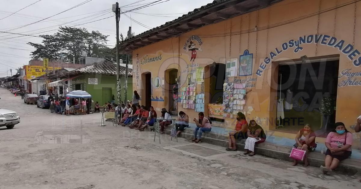 Sierra del Totonacapan, Ver. – Largas filas y por varias horas realizan beneficiarios de los programas federales de esta zona totonaca en los cajeros automáticos del único banco en la sierra y en oficinas de Telecom/Telégrafos para cobrar su apoyo económico.