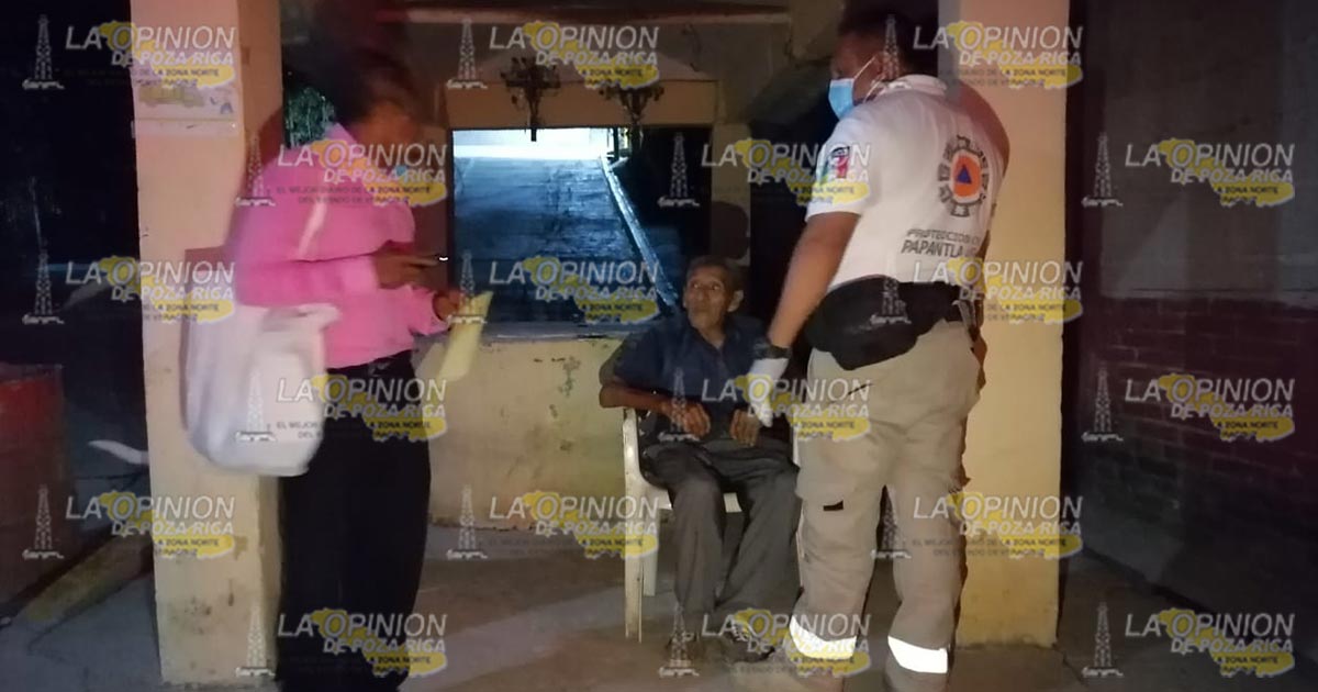 Papantla, Ver.- Técnicos en Urgencias Médicas de Protección Civil, acudieron a un llamado de auxilio por parte de vecinos de la colonia Lizardi, para socorrer a una persona de la tercera edad que sufrió dramática caída de su propia altura, debido a la lesión que presentaba no podía caminar.