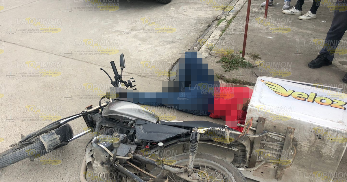 Poza Rica, Ver.- Ricardo M., con domicilio conocido en la colonia Granjas, empleado de moto envíos “Veloz”, terminó derribado de la motocicleta que conducía por la calle Armillita, tras pasarse el alto total de la calle Silverio Pérez.