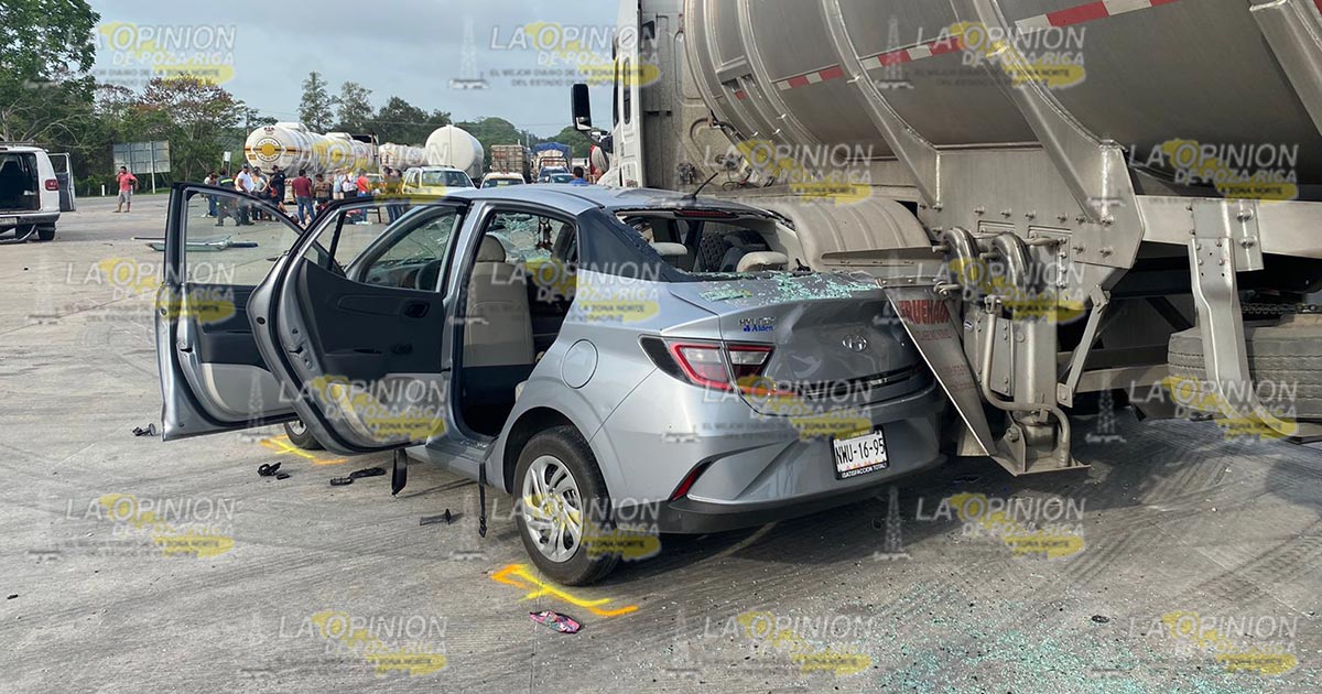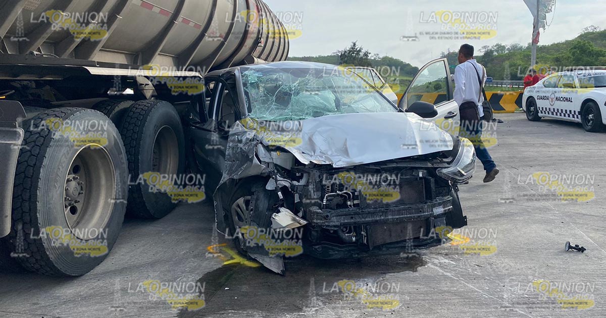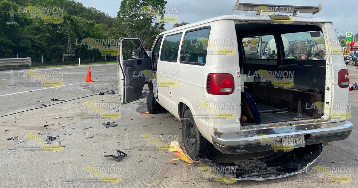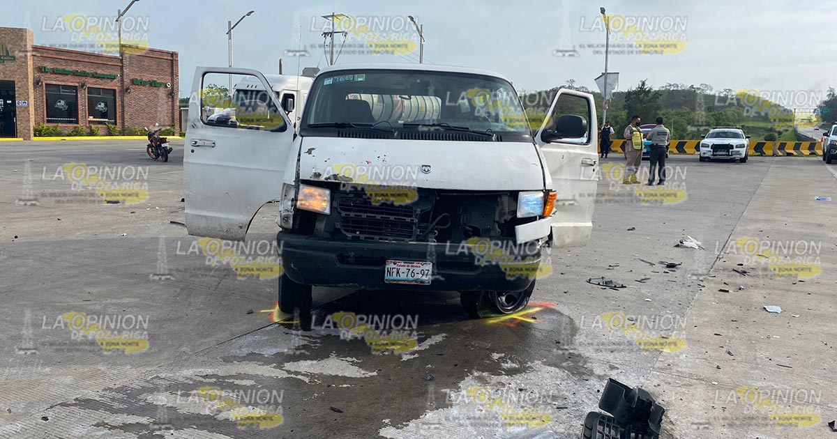 Tihuatlán, Ver.- Un fuerte accidente se presentó en la carretera Tihuatlán-Tuxpan a la altura de localidad de Chichicoaxtla cuando un automóvil compacto intentó rebasar a una unidad de transporte de personal, lo que provocó una fuerte colisión en la cual varias personas resultaron lesionadas.