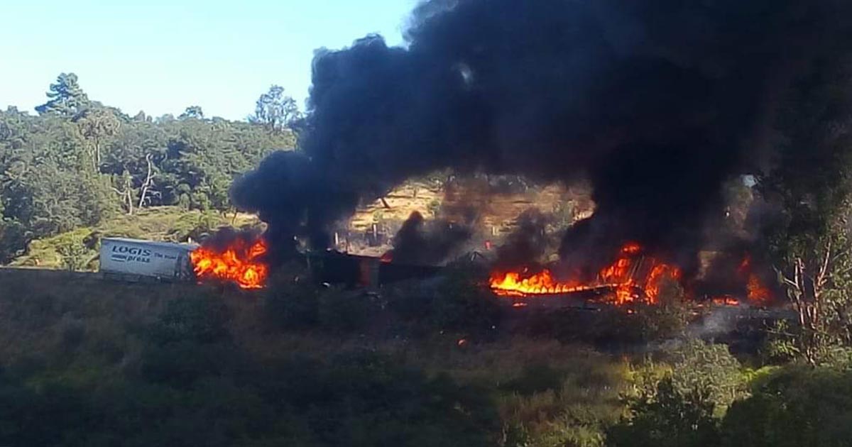San Martín Texmelucan, Puebla.- Al menos una persona murió calcinada y otras 5 resultaron lesionadas luego del choque de tres tráileres que ocurrió este viernes sobre la autopista Arco Norte.