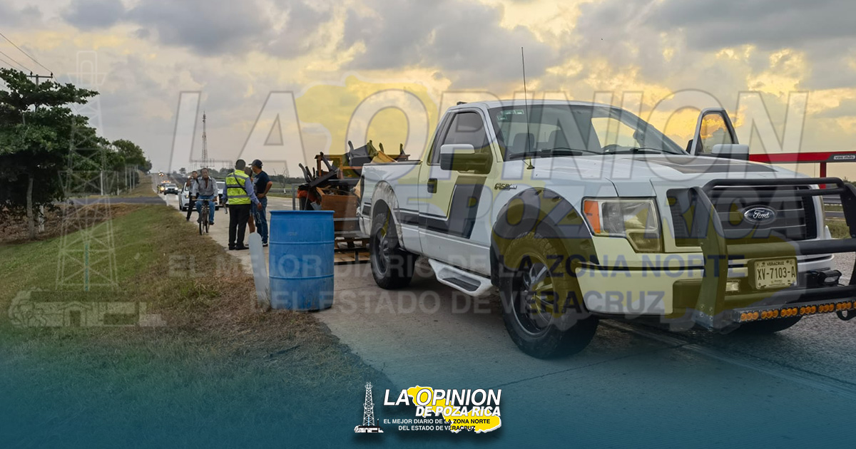 En el lugar una camioneta Ford F150, color blanco, con placas de circulación XV7103A del Estado, que halaba un remolque sufrió un aparatoso accidente que habría dejado una persona lesionada.