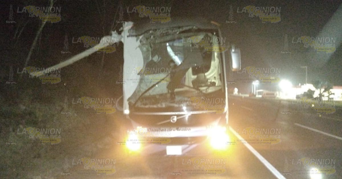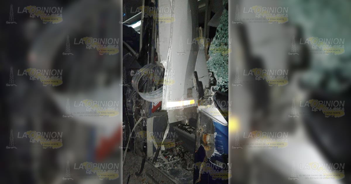Tuxpan, Ver.- Autobús de pasajeros se estrelló en la parte trasera de un tráiler que se encontraba estacionado en la autopista México Tuxpan por fortuna no hubo víctimas que lamentar; autoridades tomaron conocimiento y remitieron las unidades al corralón.