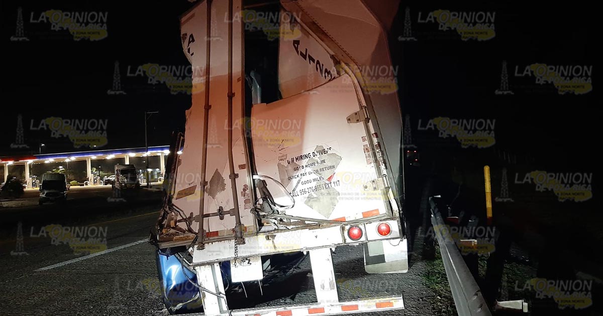 El peritaje preliminar realizado por oficiales de la Guardia Nacional División Carreteras, el percance sobrevino luego de que el operador del tráiler lo dejara mal estacionado en la zona del acotamiento toda vez que invadía parte del carril derecho en dirección al puerto de Tuxpan.