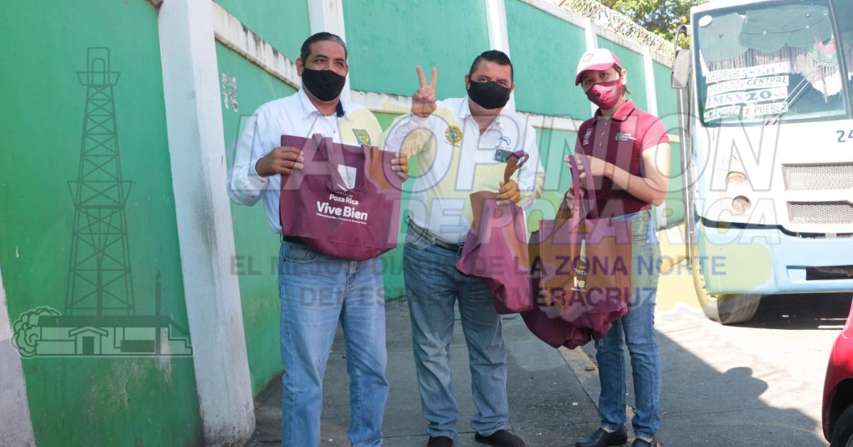Poza Rica, Ver.- El Gobierno de Poza Rica concluyó este miércoles con la entrega de kits preventivos contra el COVID-19 para trabajadores del transporte público en la modalidad de taxis que acuden al módulo de sanitización que opera sobre el bulevar Adolfo Ruiz Cortines, frente a la escuela Primaria María Enriqueta.