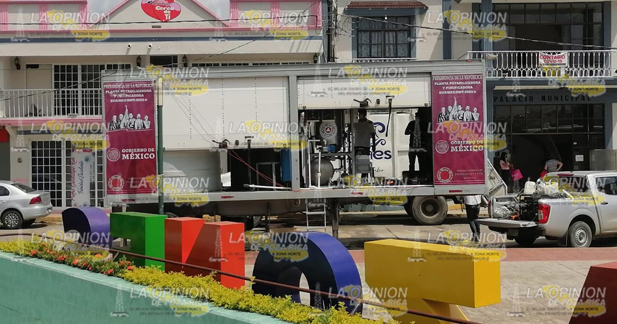 La planta, se instaló frente al palacio municipal, y es operada por técnicos de la dependencia federal, y abastecida con agua, con apoyo del ayuntamiento.