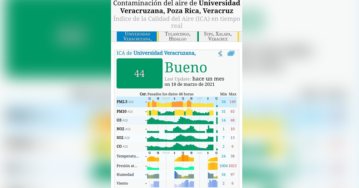 Poza Rica, Ver.- Preocupa a los pozarricenses la calidad del aire en los últimos días, dónde es notorio observar una ligera cortina de humo en todo el transcurso del día, que acuerdo a los valores de Índice de calidad del aire en la ciudad se registra como «Buena», sin embargo, los registros indican que el aire a lo largo de la semana se mantiene en «Moderado» y «No es salubre para grupos sensibles».