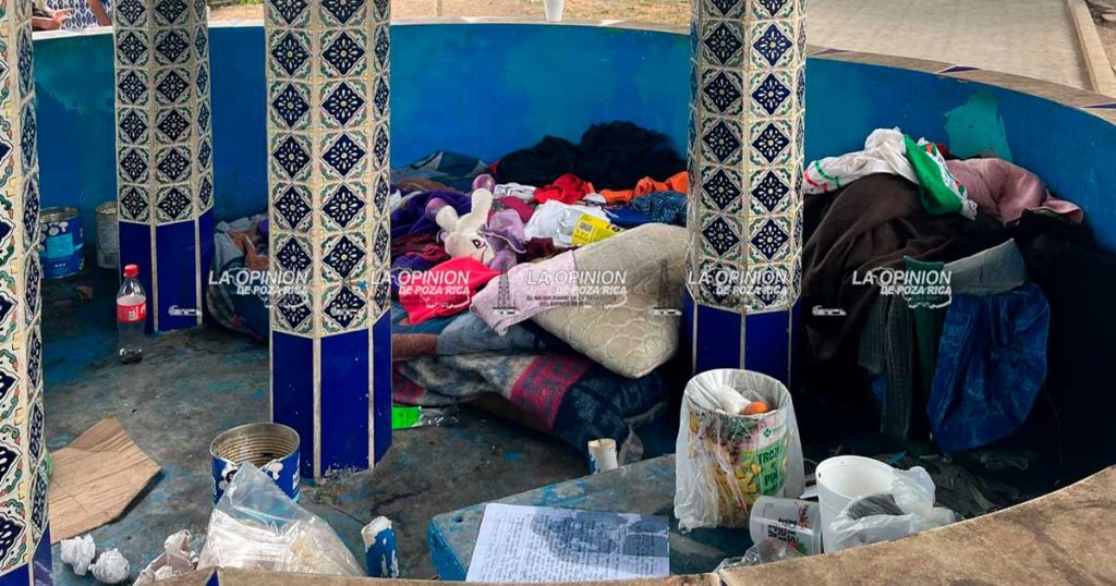 Otra fuente abandonada es la que se ubica en el mismo camellón de Ruiz Cortines, pero en el centro de la ciudad, a espaldas del hotel Poza Rica. Es justo donde se ubica el “Paseo Raíces de Vida”, la cual luce llena de basura, suciedad, ropa sucia y, en vez de lucir como punto de atracción turística, es utilizada por malvivientes como guarida, ante la falta de intervención del alcalde de la ciudad, que está más preocupado por la politiquería en busca de más poder que por los intereses del pueblo, su patrón.