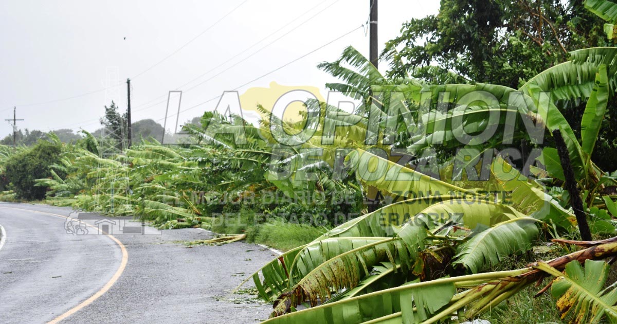 Tlapacoyan, Ver.- A causa del frente frio #4, desde la madrugada de este martes se registró fuerte tormenta eléctrica, dejando a la ciudad por varias horas sin el servicio de energía eléctrica, así como siembras de plátano se vieron afectadas, además las intensas lluvias provocaron un deslave cerca de la zona de captación de agua que abastece a la ciudad.