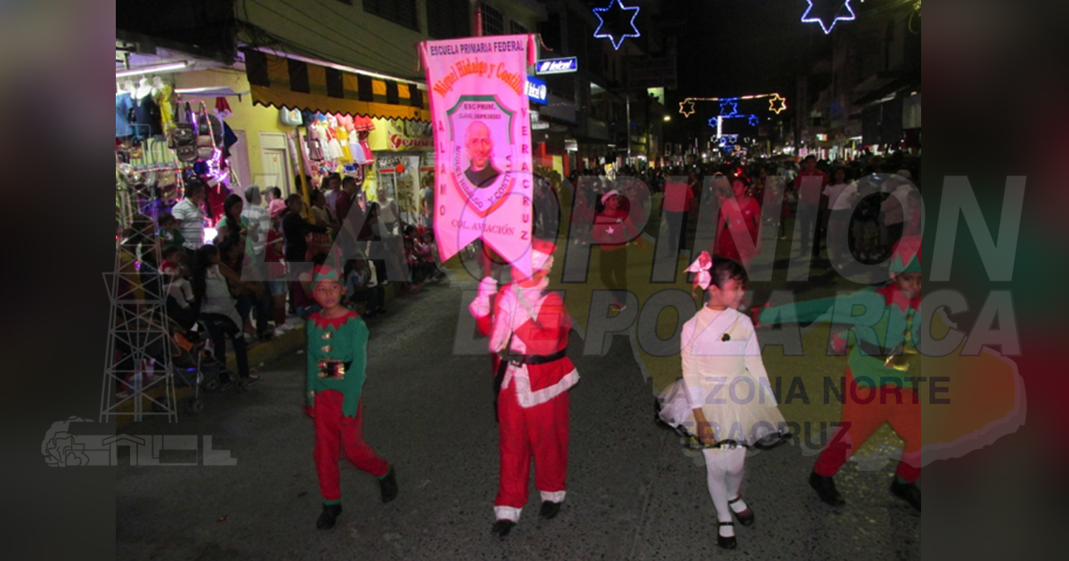 Álamo, Ver.- Durante más de tres horas, miles de alamenses le dieron la bienvenida a la navidad con un desfile nocturno lleno de luz, color, magia, fantasía, música y mucha alegría, en el que participaron cientos de niños, jóvenes y adultos, con comparsas y carros alegóricos.