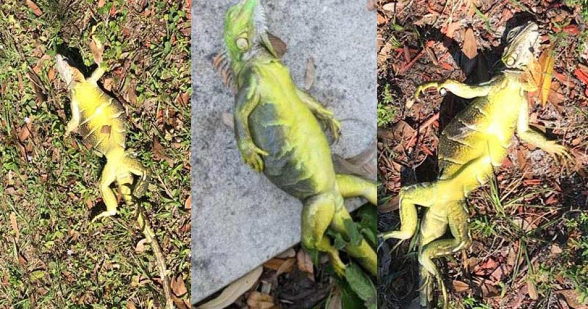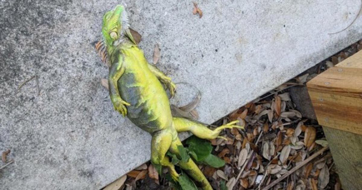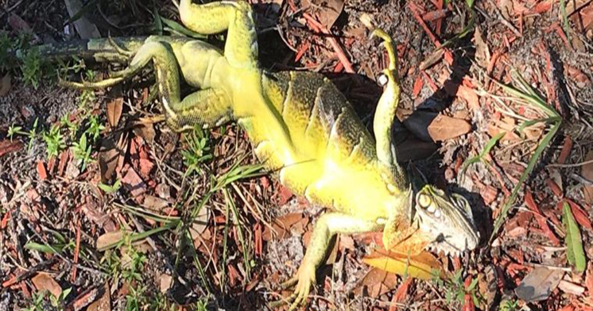 Esta es una situación que se presenta cuando el invierno es muy duro en zonas que normalmente son de temperatura cálida: las iguanas, que son de sangre fría, se desploman y se quedan así hasta recuperar el calor.