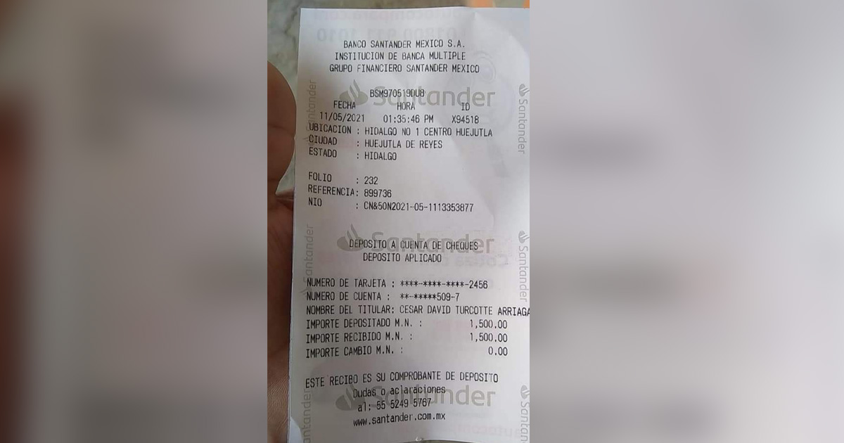 Luego de haber contactado con dicha persona mediante una llamada telefónica que realizó al número 7711907429 y depositado la cantidad de 1,500 pesos, asegura haber viajado a la ciudad de Monterrey, Nuevo León, lugar donde descubrió que había caído en el engaño, pues jamás volvieron a contactarlo.