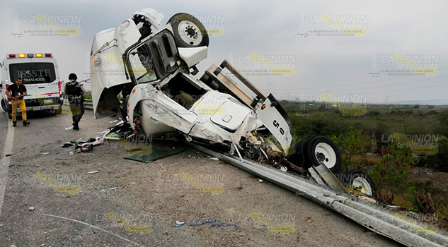 Se trata del hecho registrado a la altura del puente del poblado Tamós, en el cual, Germán Niño Cano de 62 años, perdió el control de la dirección del tractocamión Frighliner de color blanco, modelo 2009, con placas de circulación del Servicio Público Federal doblemente articulado a plataformas, saliéndose de la cinta asfáltica, para quedar pendiendo del puente, en tanto las plataformas cayeron a una cuneta.