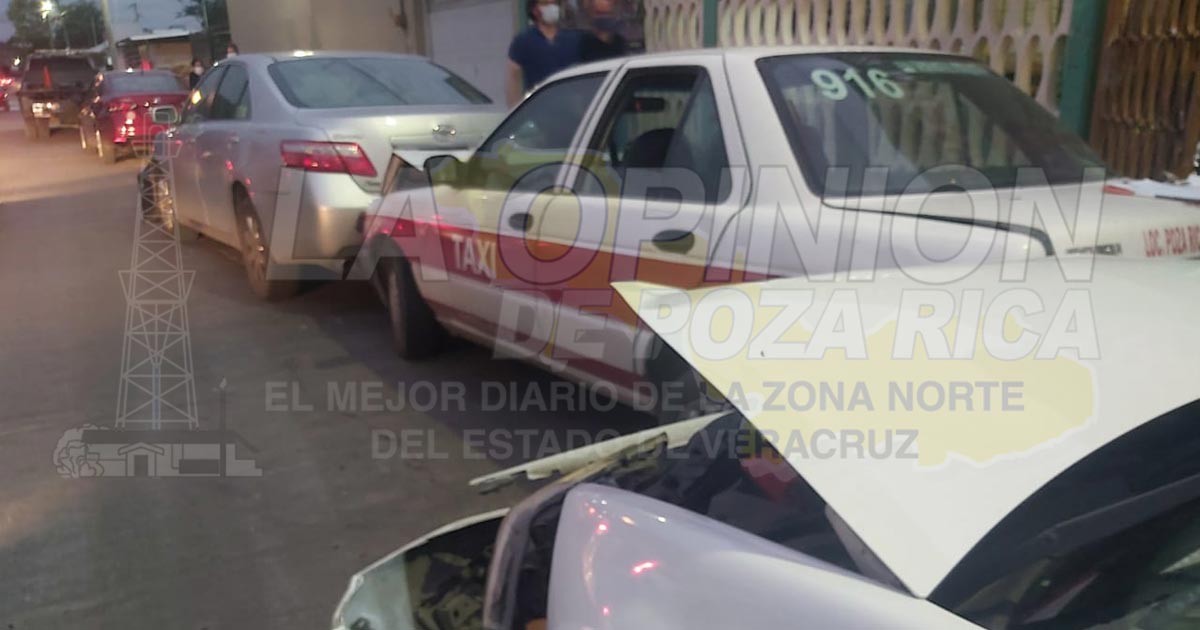 Poza Rica, Ver. – un aparatoso accidente entre 3 automóviles se registró en una concurrida avenida de la colonia Cazones.