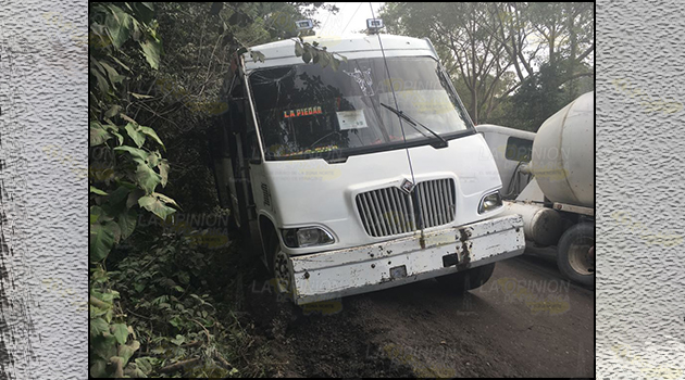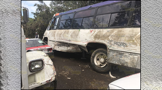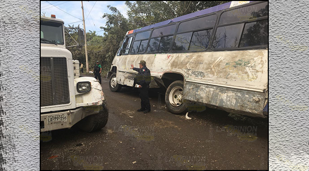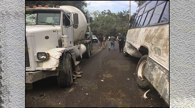 Las unidades involucradas fueron un autobús marcada con el número económico 55, sin placas, que fue impactada por un camión pesado tipo revolvedora con placas LA-79-296, dejando como saldo cuantiosos daños materiales.