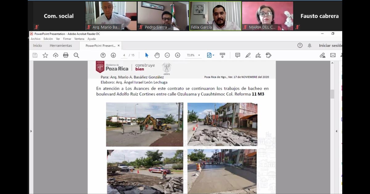 Poza Rica, Ver. – En el marco de la Centésima Tercera Sesión Extraordinaria de Cabildo realizada la tarde de este martes, los integrantes del cuerpo de ediles presidido por el alcalde Francisco Javier Velázquez Vallejo, aprobaron por mayoría el Informe de Avances Físicos de Obras o Proyectos correspondientes al mes de noviembre de 2020, realizados por la presente gestión municipal.