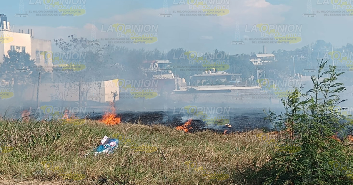 Tuxpan, Ver.- Un incendio de pastizal en predios de la colonia Pisa Flores, de esta localidad provocó temor en vecinos así como la movilización de cuerpos de emergencia por fortuna no hubo víctimas que lamentar.