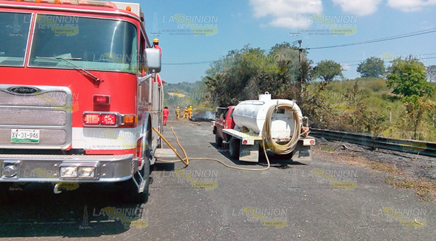 El director de Protección Civil municipal, Ismael Callejas Guzmán, indicó que la conflagración fue reportada alrededor de las 11:15 horas de este sábado, por lo que de inmediato se trasladaron al sitio de referencia, ubicado en el entronque de la carretera Federal Tihuatlán-Poza Rica y la autopista México-Tuxpan, precisamente en el punto conocido como El Trébol.