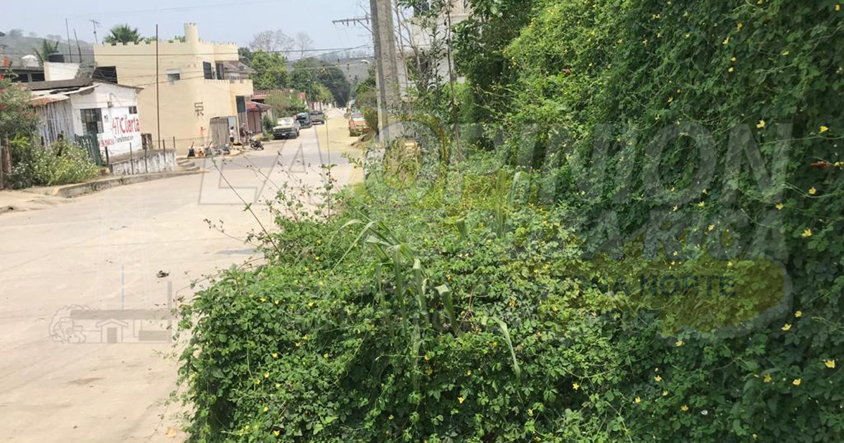 Castillo de Teayo, Ver.- Ante la falta de interés del ayuntamiento por conservar las áreas comunes, en la cabecera municipal abundan banquetas invadidas o llenas de maleza, carros chatarra en las calles, jardineras áridas o incluso utilizadas como tendederos de ropa.