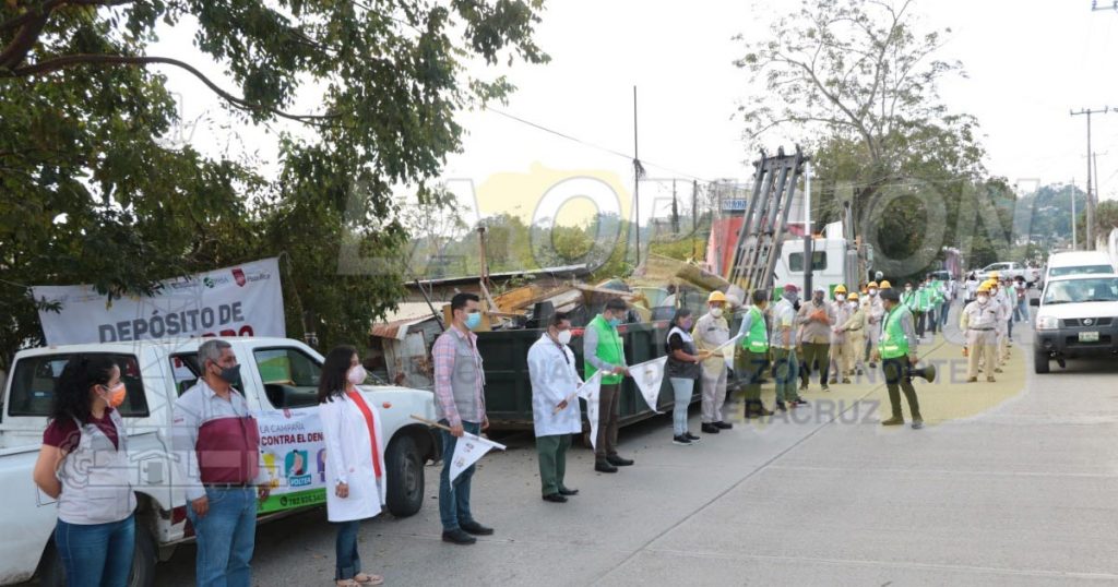 Poza Rica Ver. – El Gobierno de Poza Rica, que preside Francisco Javier Velázquez Vallejo, dio inicio a la campaña “Todos Contra el DENGUE”. Fue en la colonia Agustín Lara, donde se dio el banderazo de salida, y el recorrido por diversas calles, concientizando y exhortando a la población a participar, manteniendo limpios sus patios, libres de cacharros y evitar los posibles criaderos de mosquitos, transmisores de enfermedades como el DENGUE, ZIKA Y CHIKUNGUNYA.