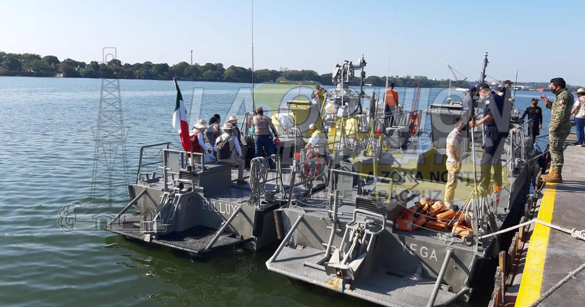 La Secretaría de Marina-Armada de México anunció que se suma a estas tareas a través de la Fuerza Naval del Golfo, en coordinación con la Secretaría de Bienestar Delegación Veracruz, la Comisión Nacional de Áreas Naturales Protegidas (Conanp), Área de Protección de Flora y Fauna Sistema Arrecifal Lobos-Tuxpan (Apffsal) y la Administración Portuaria Integral.