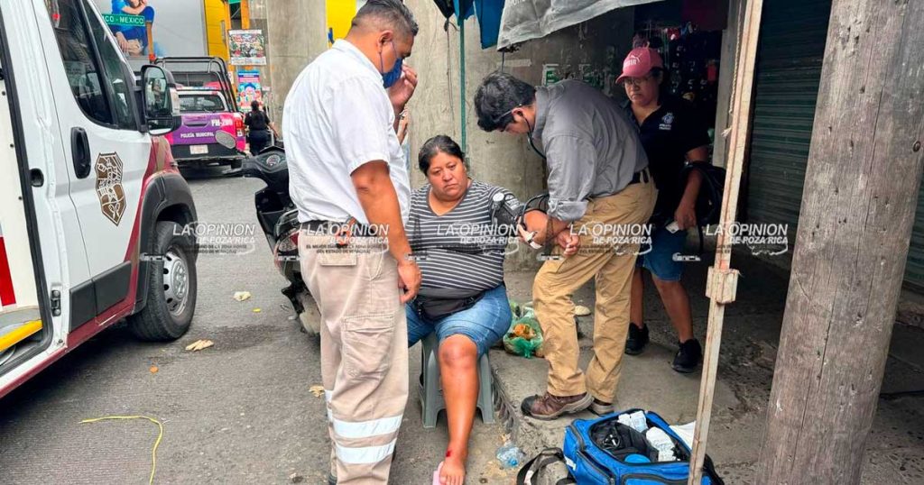 El accidente ocurrió cuando un taxi Nissan March, con número económico 80 del municipio de Coatzintla, no guardó la distancia adecuada y chocó por alcance contra una motoneta Italika, en la que viajaba una mujer de entre 30 y 40 años.