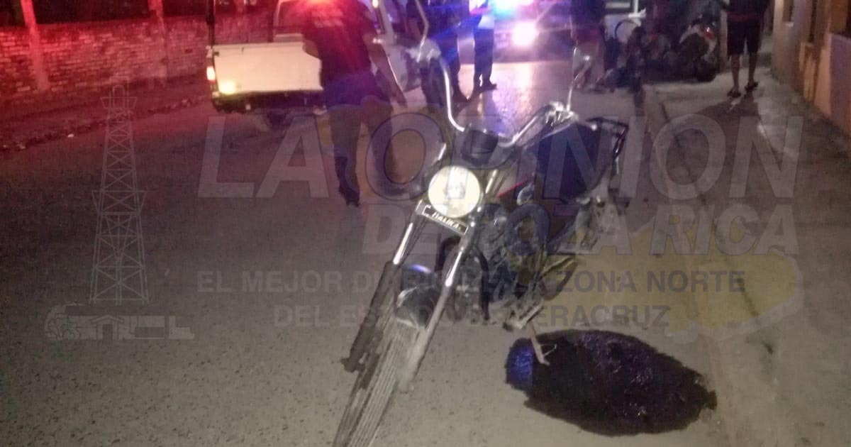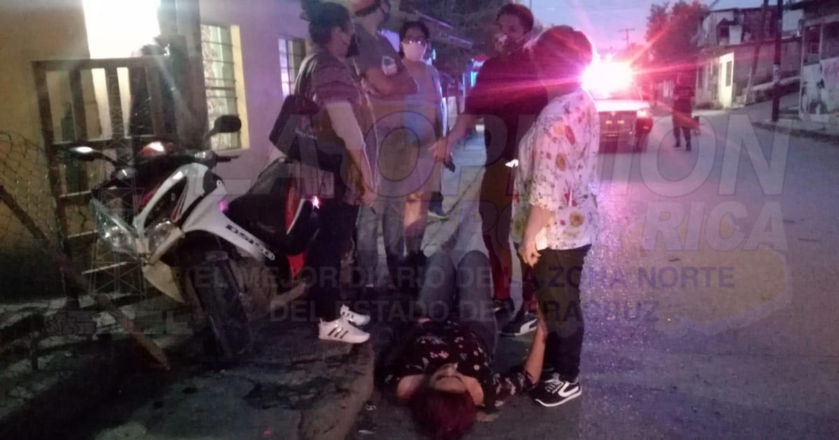Tuxpan, Ver.- Joven mujer que abordaba su motocicleta para dirigirse hacia su casa fue arrollada por un veloz auto cuyo conductor en su huída dañó otra unidad que se encontraba estacionada; autoridades tomaron conocimiento pero recomendaron a los agraviados interponer una denuncia ante la UIPJ.