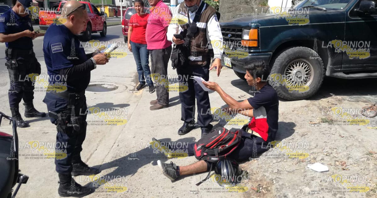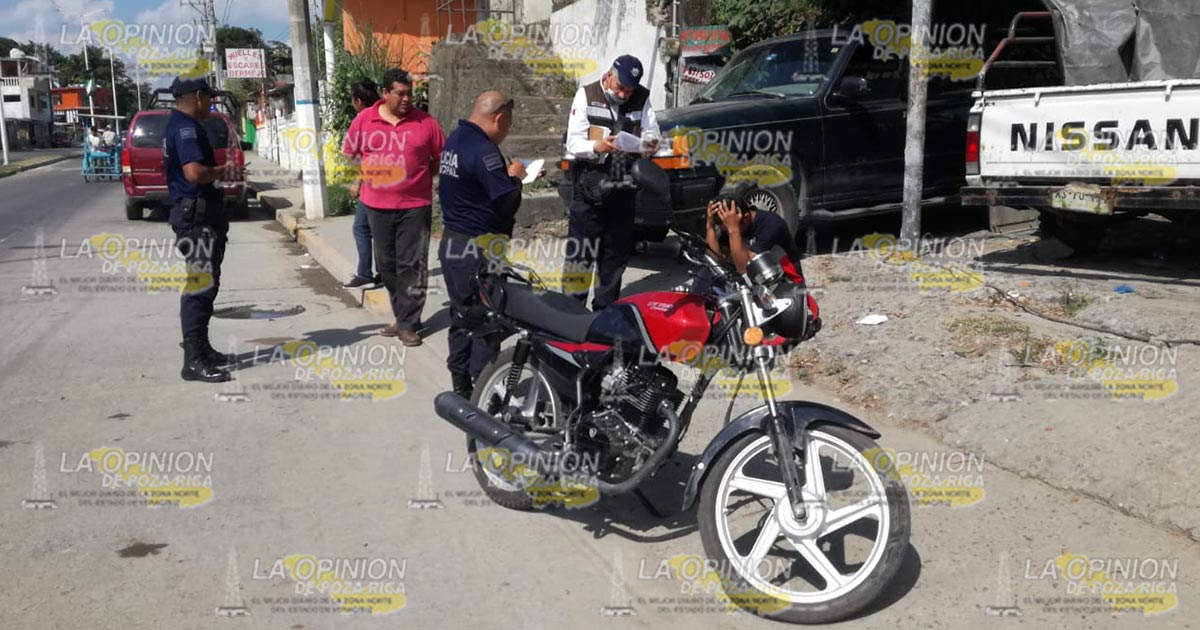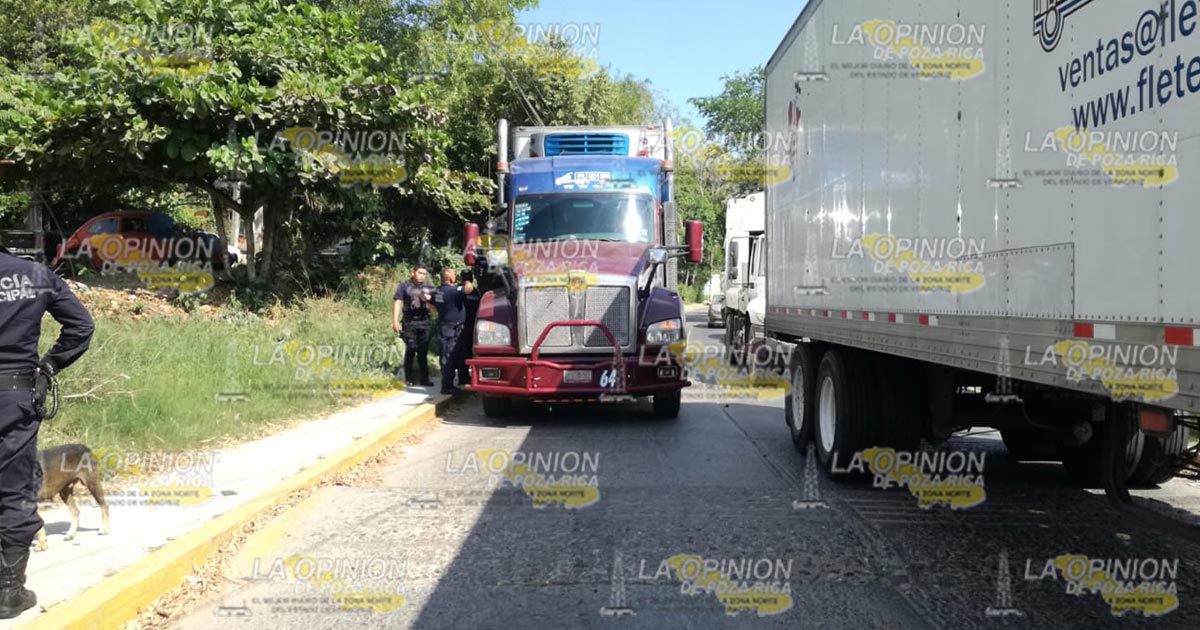 Tuxpan, Ver.- Joven que manejaba una motocicleta fue impactado por un tráiler y resultó lesionado; el presunto responsable intentó darse a la fuga pero no lo consiguió.